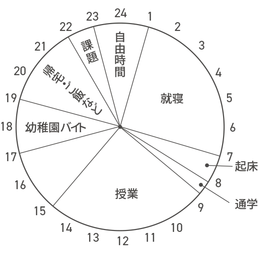 保育士をめざすため本学の幼児教育コースを志望しました。実習や授業の説明がていねいで分かりやすく、先生方の細やかな対応のおかげで安心して学べます。男子学生の数は少なめですが、無理に男子同士でペアを組むようにといった指示はなく、個人の気持ちを尊重し男女の区別なく対応くださるので学びやすい環境です。私は幼稚園教諭免許と保育士資格に加え小学校教諭1種免許の取得もめざしており授業はかなり忙しいのですが、大学で学ぶ中で自己管理能力が身につきました。今後はさらに実習を重ねて、保育界では少ない男性保育士として、身体を動かしたい子どもたちに存分につき合える先生になりたいです。