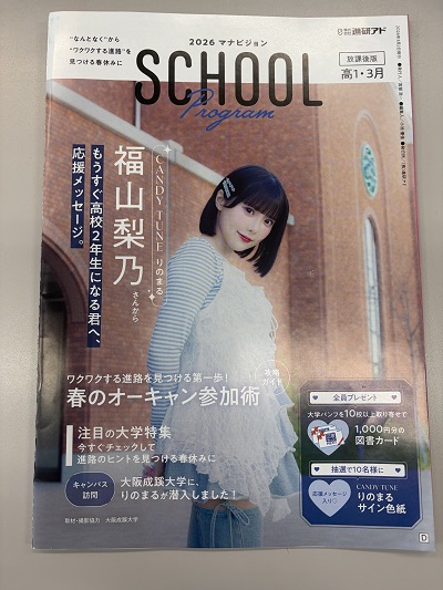 CANDY TUNE福山梨乃さんが大阪成蹊大学で撮影を実施—(株)進研アド マナビジョンスクールプログラム放課後版(3月2日発行)に掲載―