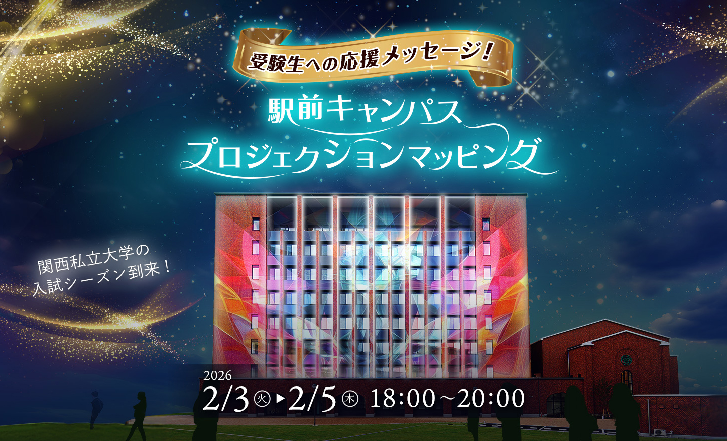受験生を応援!駅前キャンパスにプロジェクションマッピング投影(2/3〜2/5)