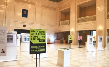 大阪市役所本庁舎正面玄関ホールにて、第15回アート&デザインコンペティションの優秀作品パネル展開催中
