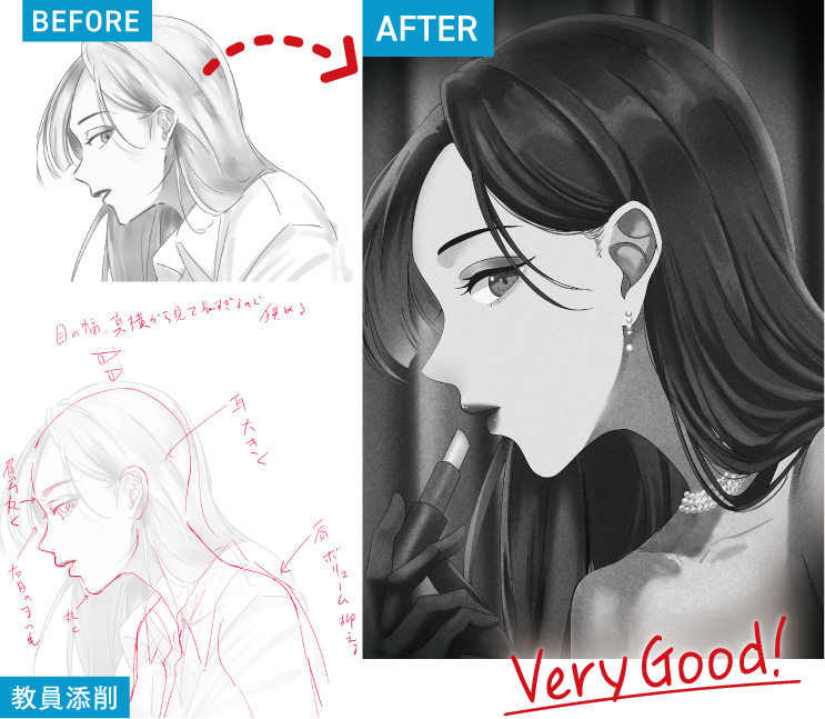 トップクリエイターからの直接指導によりアニメやゲームのキャラクターデザインや、アプリなどのデザインを学びます。