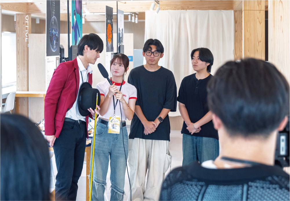 動画を配信する映像プラットフォームでは、ライブやトークの楽しさをいかに伝えるかが再生数に直結します。本コースでは自分たちで映像イベントを運営し、そのなかでライブ配信を体験。機材を扱う技術力に加え、トークの組み立て方、ゲストを呼ぶタイミングといった構成力を磨くことができます。