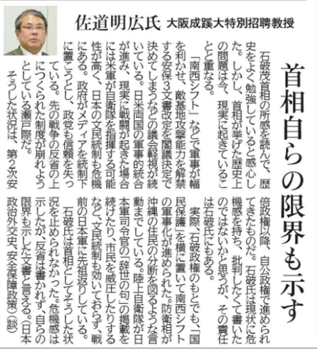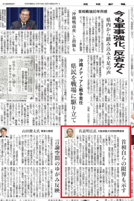 佐道 明広 教授のコメントが、琉球新報に紹介されました