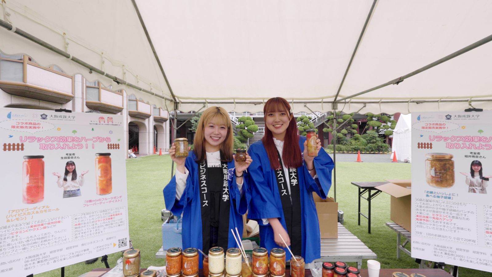 食ビジネスコース 髙畑ゼミの生田愛音さん、稲井暁音さんが中心となってハーブが持つリラックス効果などを啓発するためコラボ商品を企画・開発し、大阪成蹊大学・大阪成蹊短期大学 大学祭の特別模擬店にて1日限定で販売しました。多くのご来場者に手に取ってもらい、たくさんの労いのお言葉をいただきました。