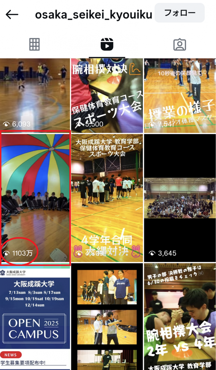 • 教育学部Instagramリール動画が1,000万回超再生されました