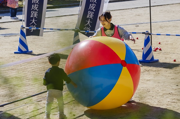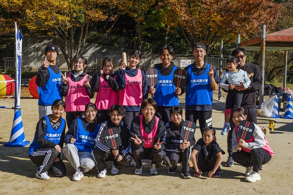 教育学部 教育学科 中等教育専攻 保健体育教育コース 臼井 達矢准教授ゼミが2025年11月16日(日)に紫金山公園にて実施された、吹田市主催の地域活性化イベント(社会実験)「紫金山MoriMoriDAY2025」においてビーズ株式会社との産学連携事業として「マルチスポーツ体験」ブースを運営しました。