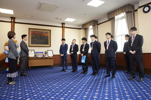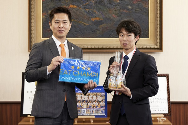 第21回全日本大学フットサル大会(8月岸和田市で開催)で優勝したフットサル部が、12月8日に大阪府知事を表敬訪問しました。