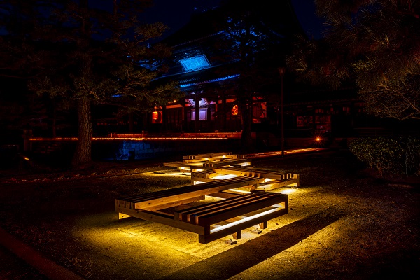 芸術学部 造形芸術学科 インテリア・プロダクトデザインコース の教員と学生が、京都府宇治市にある 黄檗宗大本山 萬福寺 で開催中の「黄檗宗大本山 萬福寺 特別拝観 & 光のアートインスタレーション」に、インスタレーション作品のデザイン・制作で参画しました。