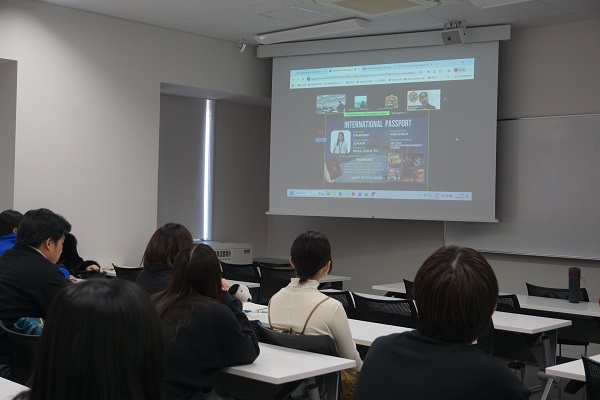 今回の授業ではPowerPointスライドで各自のバーチャルパスポートを作成し、それぞれの大学のプログラムやそれぞれの文化のユニークな側面(伝統、祭り、食べ物、習慣など)、訪れたい場所とその理由について英語でプレゼンテーションを行い、国際観光に関する問題について議論しました。