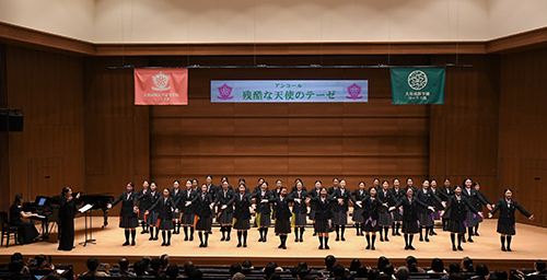 当日はほぼ満席になるほどの大盛況で、大阪成蹊女子高等学校、大阪成蹊大学・大阪成蹊短期大学のコーラス部員は、日頃の練習の成果を存分に発揮し、ご来場の皆さまはホールに響き渡るその美しい歌声に魅了されました。