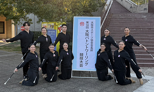 2025年12月28日(日)岸和田市総合体育館にて開催された「大阪市スポーツ協会会長杯 第18回大阪バトントワーリング競技大会」においてバトントワーリング部が出場し、大学部門にて各種目で表彰台、入賞を獲得するなど、活躍を見せました。