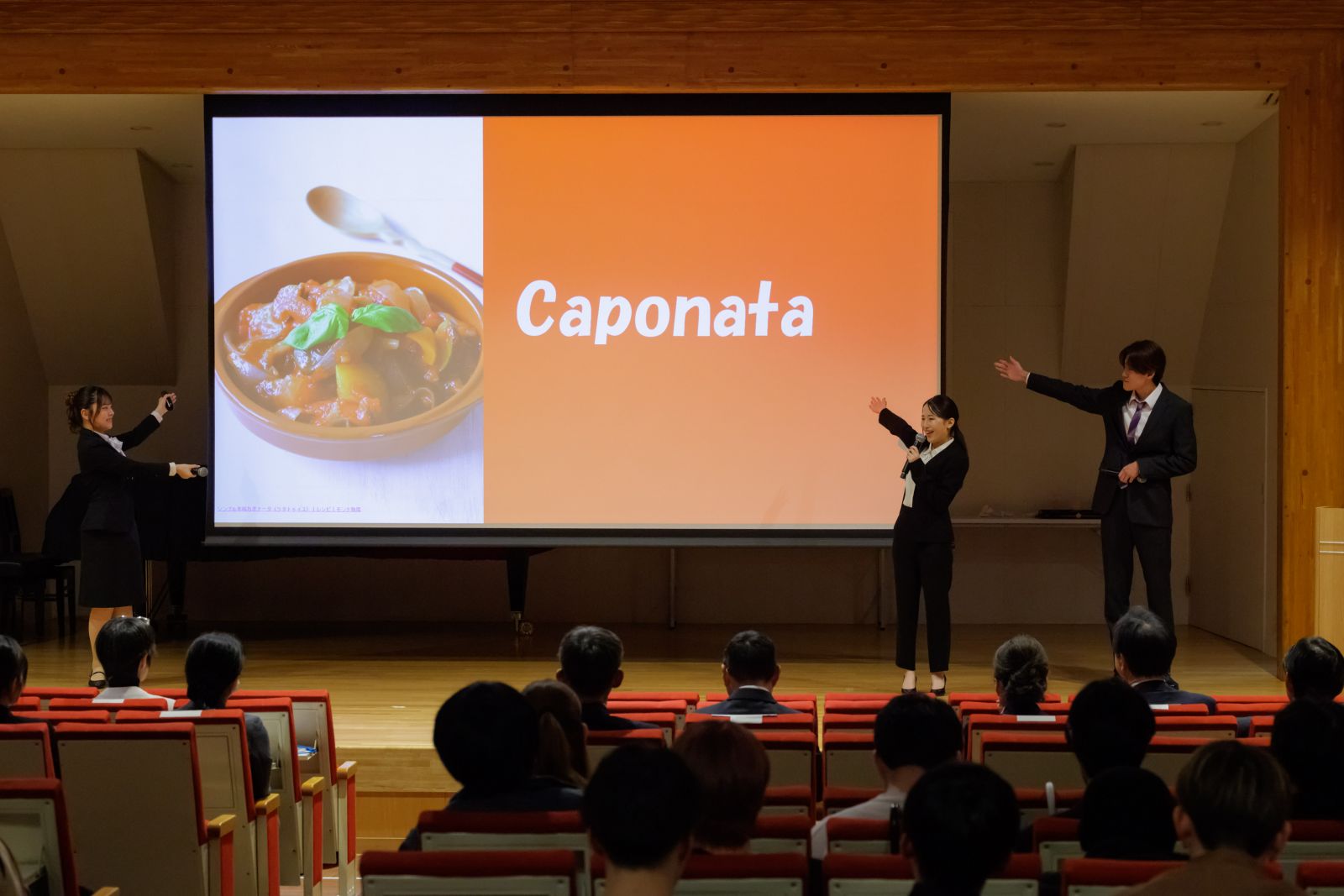 「暗唱部門」と「プレゼンテーション部門(教育学部 英語教育コース)」「プレゼンテーション部門(国際観光学部)」の3つのパートで構成され、暗唱部門ではスピーチを暗唱することを通じてスピーチ構成の理解や発音の向上、効果的な発声方法が求められ、プレゼンテーション部門ではこれまでの英語学習で培った英語運用能力を活かすことが求められます。