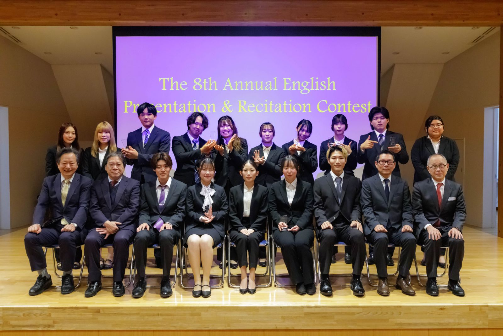 2025年12月25日(木)に、「第8回 英語プレゼンテーション/暗唱大会 English Presentation/ Recitation Contest」が開催されました。この大会は、日ごろの英語学習の成果発表の場を設けることで、学生の学習意欲を高めるとともに英語運用能力やプレゼンテーション力を向上させることを目的としています。