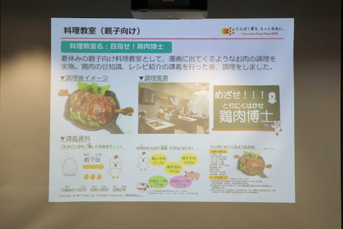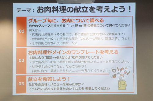 ▲グループワークでは各班がお肉の持っている栄養素や相性の良い食材などを調べ、