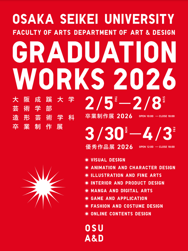 学生が大学生活で学んだ様々な知識、技術を活用しながら、自身が興味を持ったこと、課題と感じていることをテーマにして、調査・実験を繰り返して総括し、表現・昇華することで生まれた作品です。学生ならではの若いアイデア、自由なエネルギーが溢れる作品ばかりが揃っており、また各コースの幅広い学びによる賜物として、大変見応えのある展覧会となっております。学生の努力の結晶を直接ご覧いただき、作品に込めた想いを感じ取っていただけますよう、みなさまのご来場をお待ちしています。