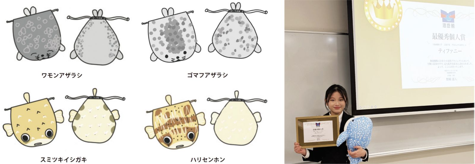 ▲(左)優秀個人賞①「オリジナルグッズ″日本の川の魚定規″」
