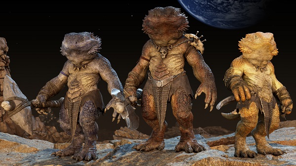 この惑星にはフトアゴヒゲトカゲ族以外にも多様なトカゲ族が存在し、部族ごとの文化や価値観が衝突・共存するという広がりのある世界観を想定しています。