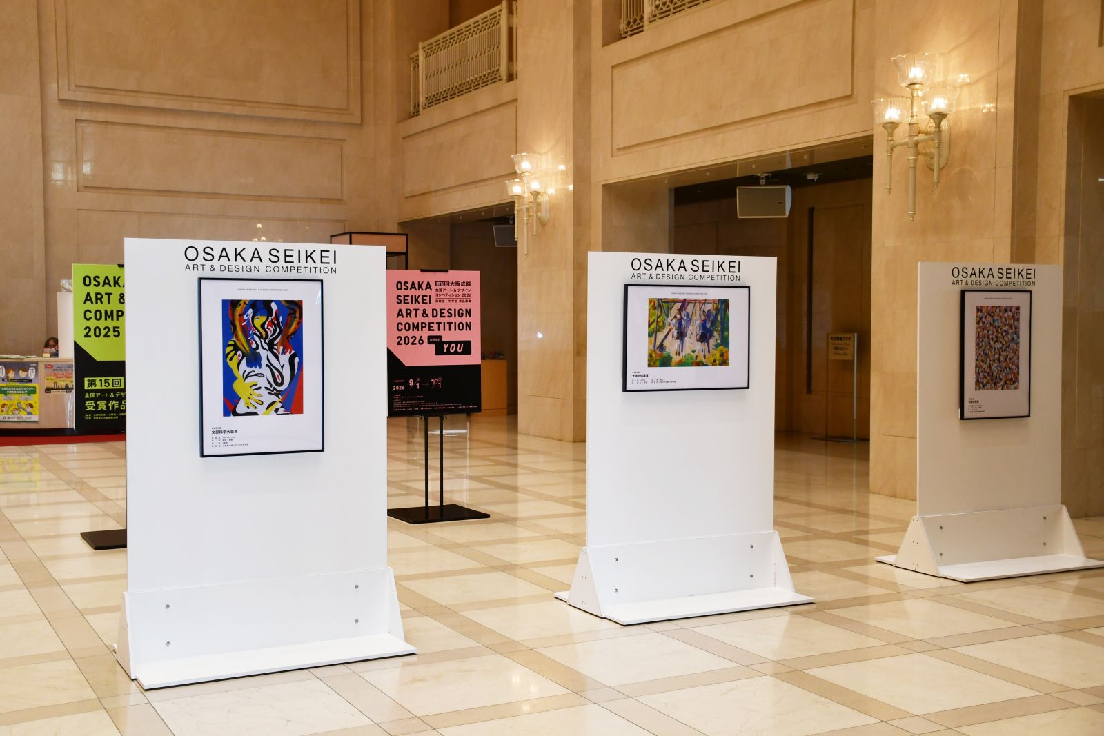 2025年度に実施した「第15回 大阪成蹊全国アート&デザインコンペティション」において、上位に入賞した作品のパネル展示を、3/30(月)より大阪市役所本庁舎正面玄関ホールにて開催しています。