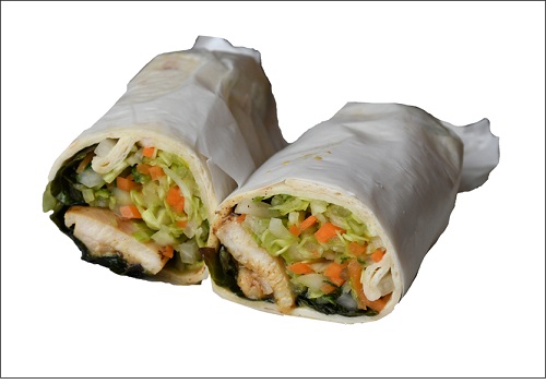 特徴:1日に必要とされる野菜の目標摂取量(350g)の約1/3日分に当たる野菜を使用した、サラダラップです。キャベツや水菜のシャキシャキとした食感を楽しむことができます。具材の中心にはスパイスを効かせたタンドリーチキンを使用しています。香ばしく焼き上げたチキンとみずみずしい野菜の食感が食べ応えある一品です。