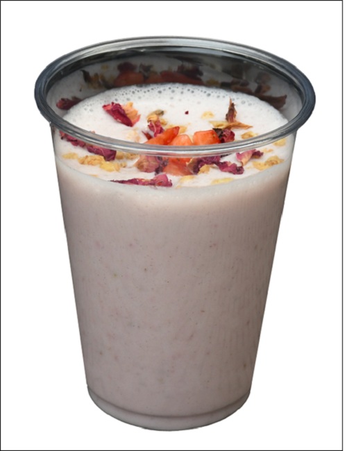 特徴: 1日に必要とされる果物の目標摂取量(200g)の約1/3日分に当たるいちご85gを使用したラッシーです。ヨーグルトベースにいちごの酸味が効いたまろやかで飲みやすく、カレーとの相性も抜群です。グラノーラといちごの果肉が入っているため食感のある、新感覚なラッシーです。